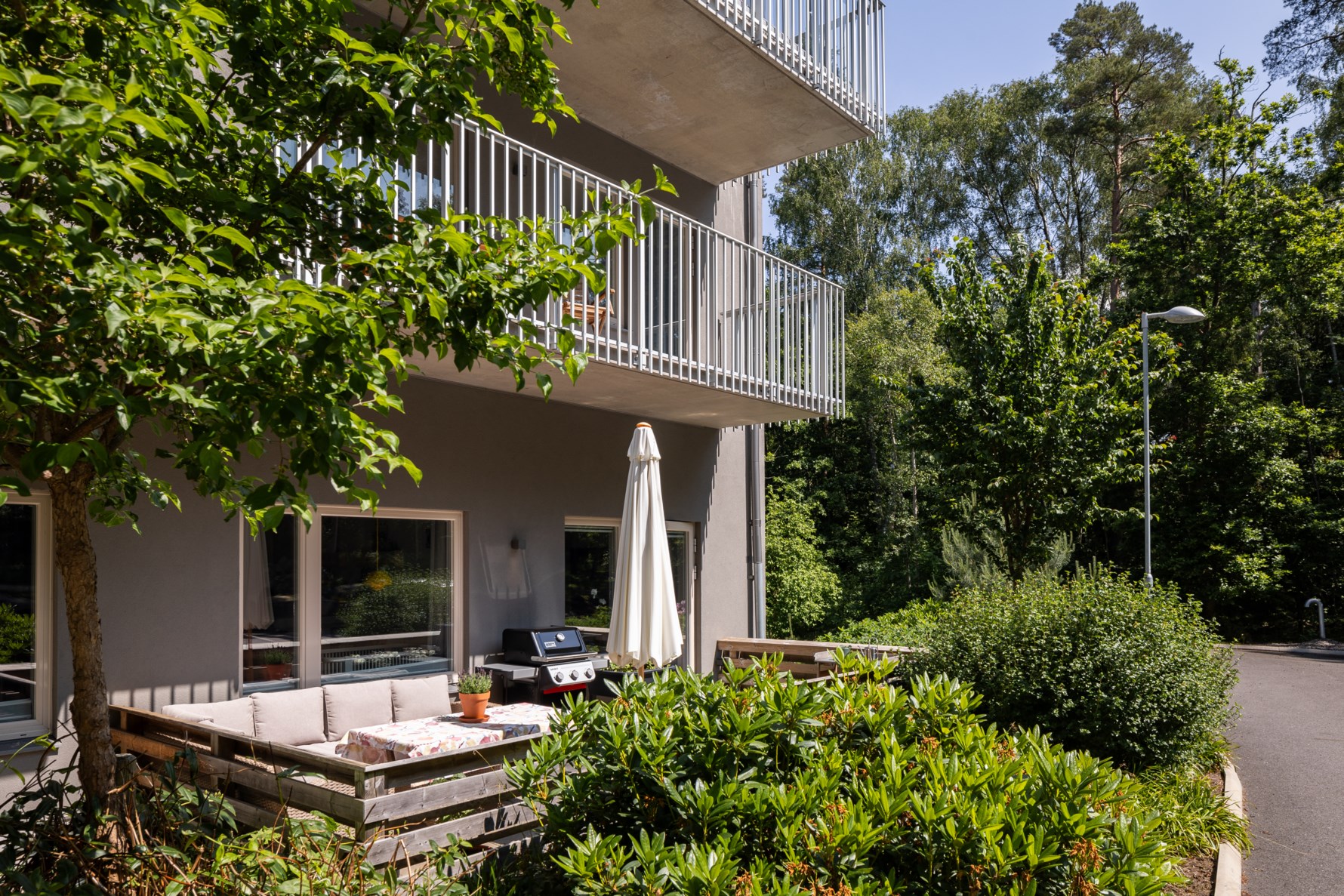 Det luftiga och ljusa vardagsrummet blir naturligt lägenhetens mittpunkt i den delvis öppna planlösningen med anslutning till köket oxch uteplatsen. Den väl tilltagna uteplatsen har sydvästlig riktning mot den vackra grönskan och rymmer med enkelhet ett större sällskap under de härliga sommarkvällarna.