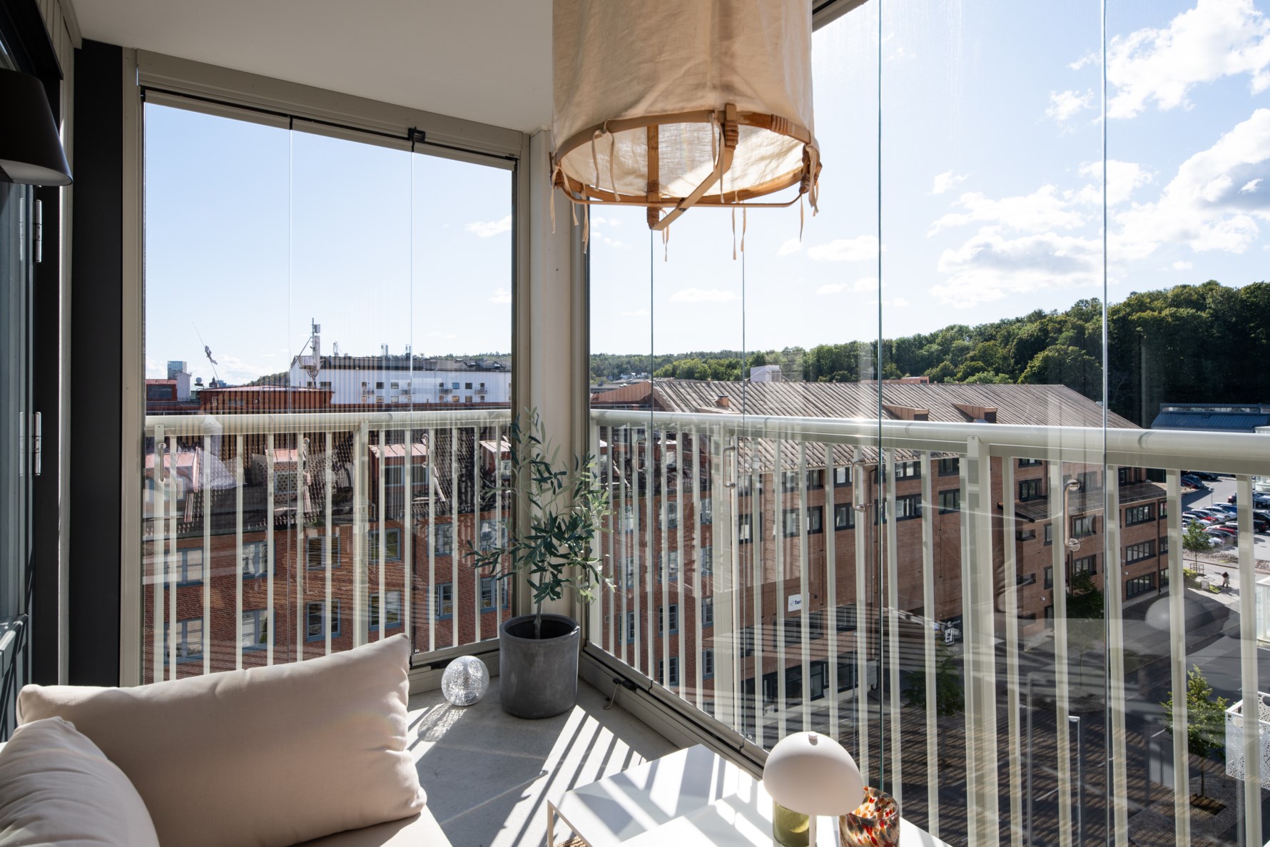 Härliga sociala ytor med vardagsrum och kök i öppen planlösning. Här kan man inreda med soffa, matplats och övrigt möblemang. Fint ljusinsläpp från ett generöst fönsterparti samt utgång till lägenhetens inglasade balkong i västerläge som bjuder på fantastisk utsikt.